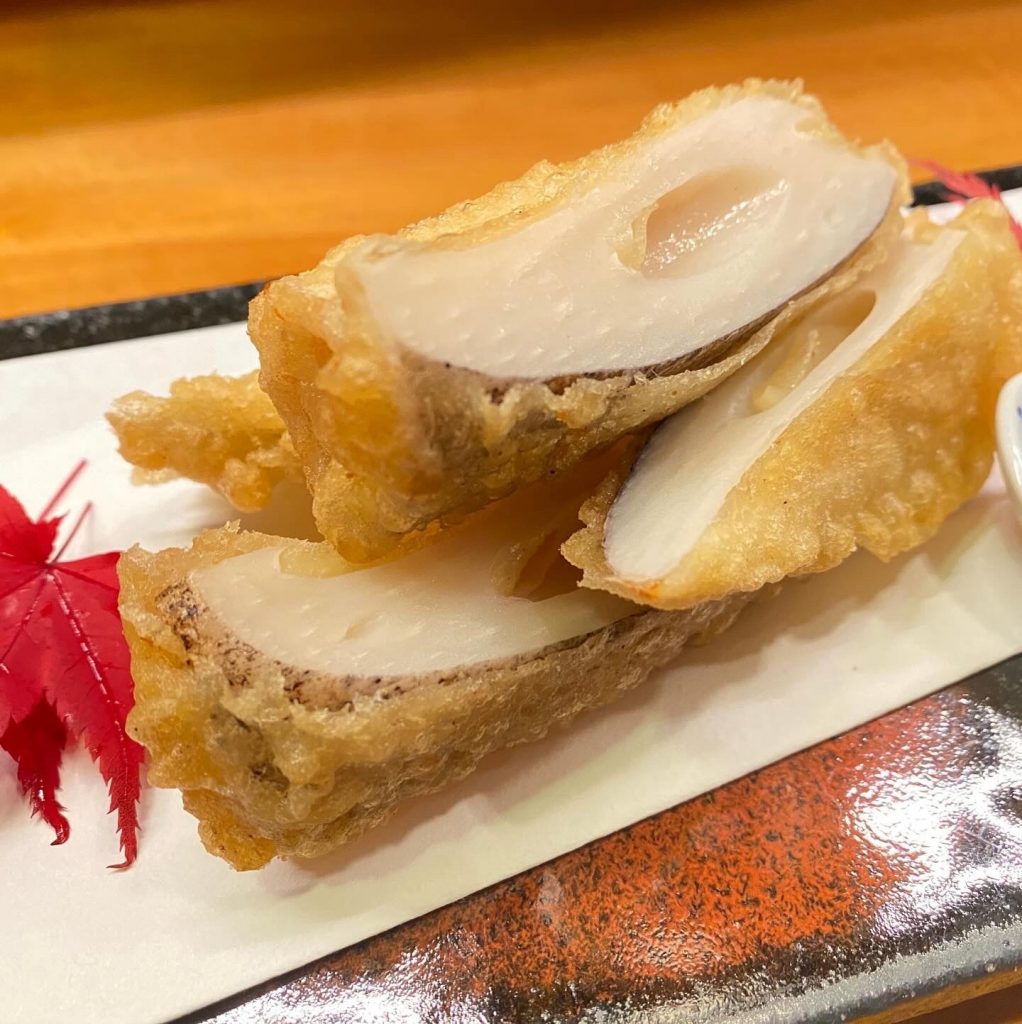 人気の“蓮根天ぷら”と、料理長気まぐれメニュー“蓮根饅頭”でご用意しております☺️