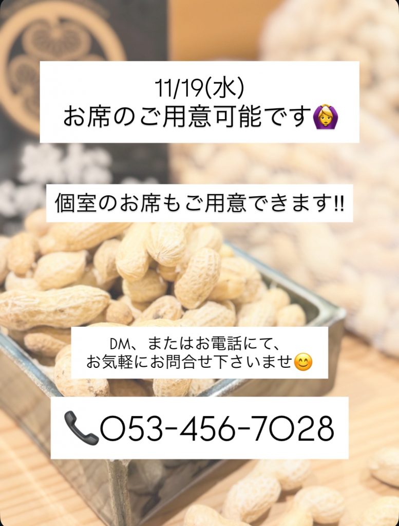 11/19(水)、お席のご用意可能です🙆♀️