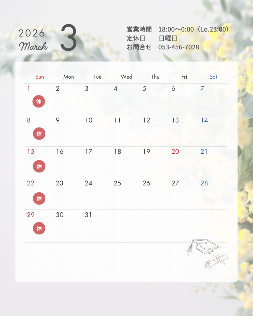 3月営業日のお知らせです🙇♀️ 3月もすでにたくさんのお問合せを頂き、誠にありがとうございます🙇♀️✨ 娯座樓...