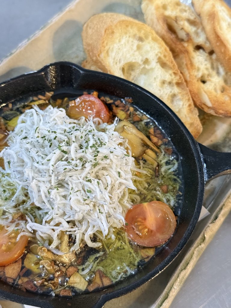 浜名湖【将軍牡蠣】 舞阪産【釜揚げしらす】 間違いない地元食材を、 自家製ガーリックオイルでグ...