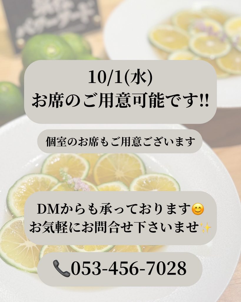 10/6(月)、お席のご予約可能です🙆♀️! 個室のお席もございます😊 本日はお電話が繋がりませんので、Instagram...